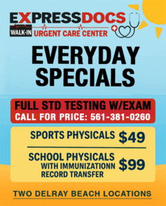 Walk In – No Appointment Necessary! At ExpressDocs Urgent Care in Delray Beach, we’re making it easier than ever to stay on top of your